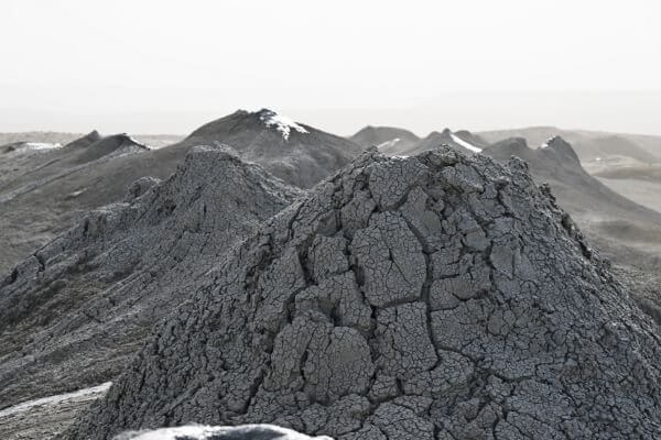 وتُعد أذربيجان منطقة نادرة وكلاسيكية لتطور براكين الطين. فمن بين أكثر من ألفي بركان طيني معروف على سطح الأرض، يقع أكثر من 350 منها في شرق أذربيجان وفي مياه بحر قزوين. وتنتشر براكين الطين بشكل رئيسي في شبه جزيرة أبشرون، ومجموعة الجزر المحيطة بباكو، وشماخي، وغوبوستان، وجنوب شرق شيرفان.